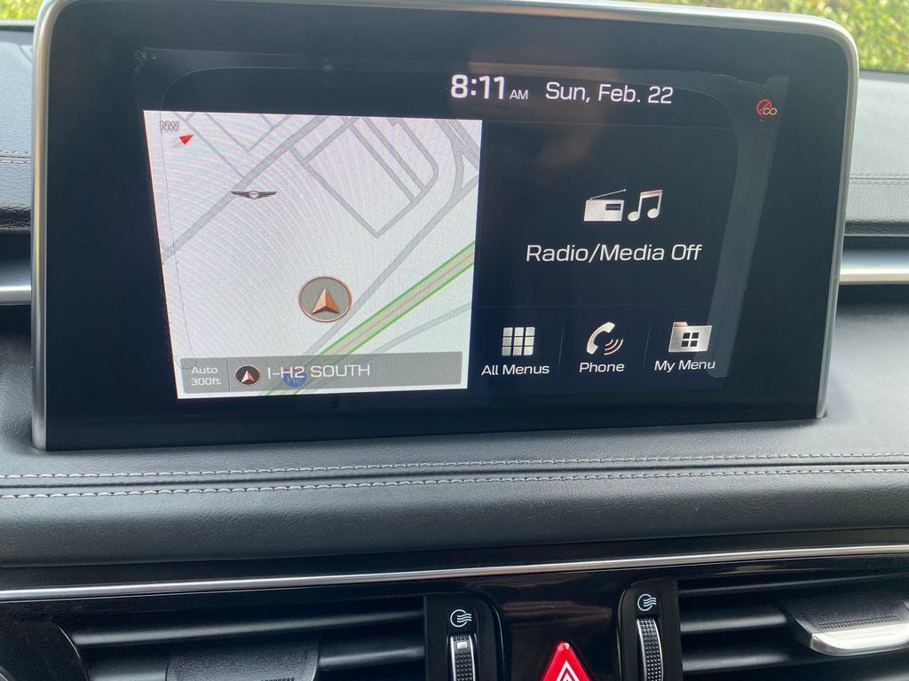 - Radio: AM/FM/SiriusXM/HD Audio System -inc: 6 channel internal amplifier, 6 speakers including subwoofer, 8" touchscreen display, front 12V power outlet, steering wheel controls, Android Auto, Apple CarPlay, 2 front USB ports, auxiliary input jack, Bluetooth® hands-free phone system and Genesis Connected Services